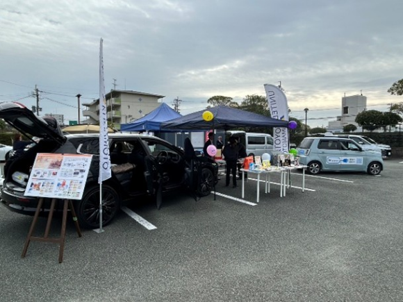 本企画は、子どもから大人まで楽しみながら防災知識に触れることを目的とし、防災に関する言葉や行動を題材としたオリジナルかるたを作成して行いました。また、県内のディラー8社の車中泊仕様の車の展示、ぼっちゃ大会、校区内のPTA協力のもと炊き出し体験も実施されました。